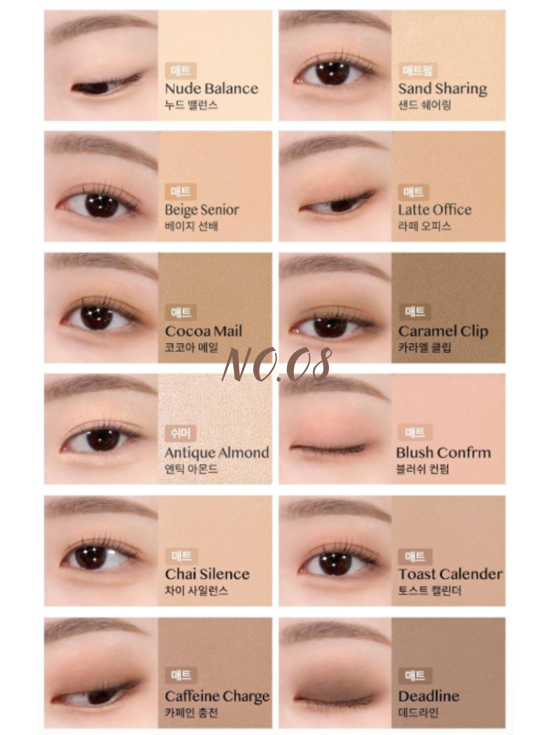 12 гармоничных оттенков: От базовых матовых до роскошных сверкающих глиттеров. Позволяет создать как нежный дневной «нюд», так и глубокий вечерний «смоки».