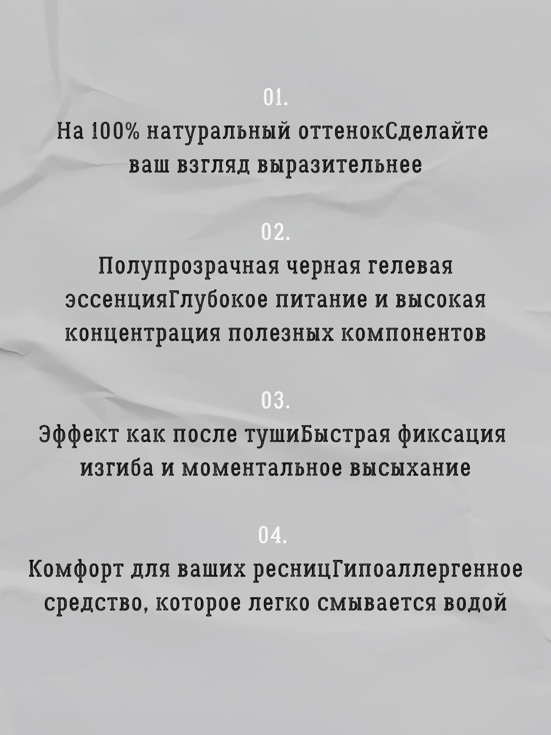 Тин팅-эффект: Натуральный черный пигмент придает ресницам выразительность, делая их визуально гуще без использования тяжелой туши.
